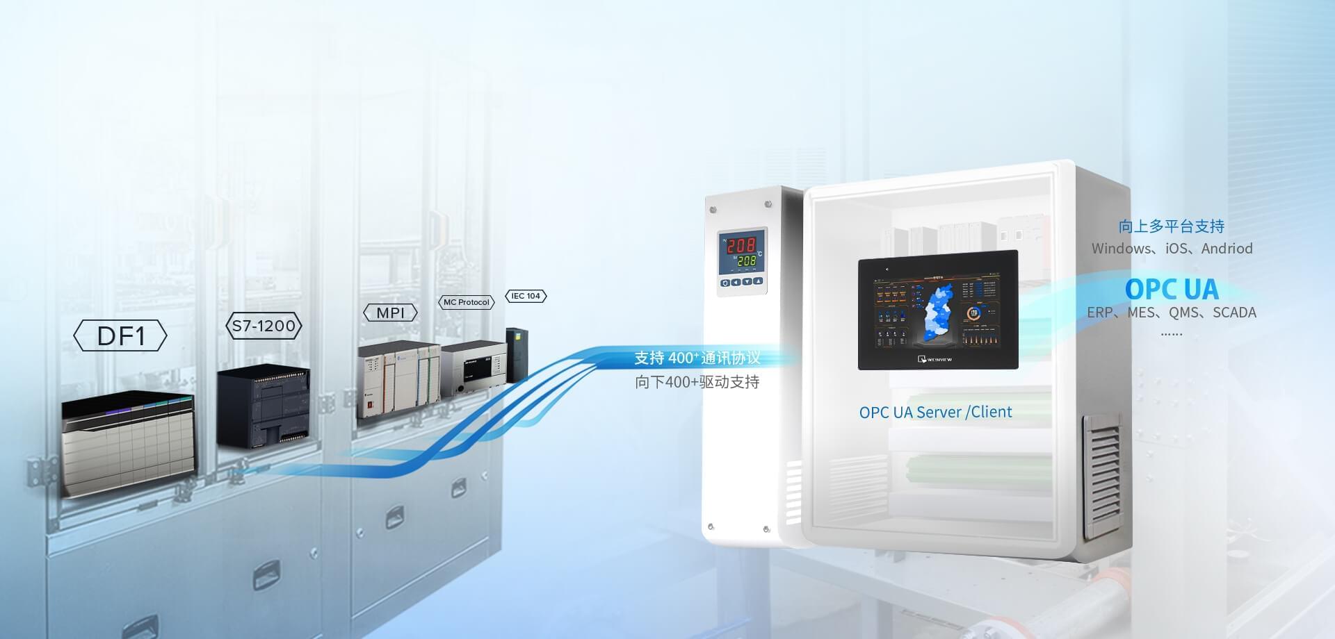 支持 400+ PLC 通訊協(xié)議,物聯(lián)網(wǎng)通訊協(xié)議及數(shù)據(jù)庫連接,能快速整合現(xiàn)場設(shè)備資料。
